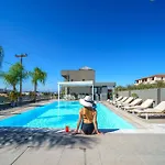 Κάθε δωμάτιο βλέπει σε πισίνα. Υπάρχει επίσης κουζίνα, εξοπλισμένη με καταψύκτη, κεραμική κουζίνα και φούρνο.